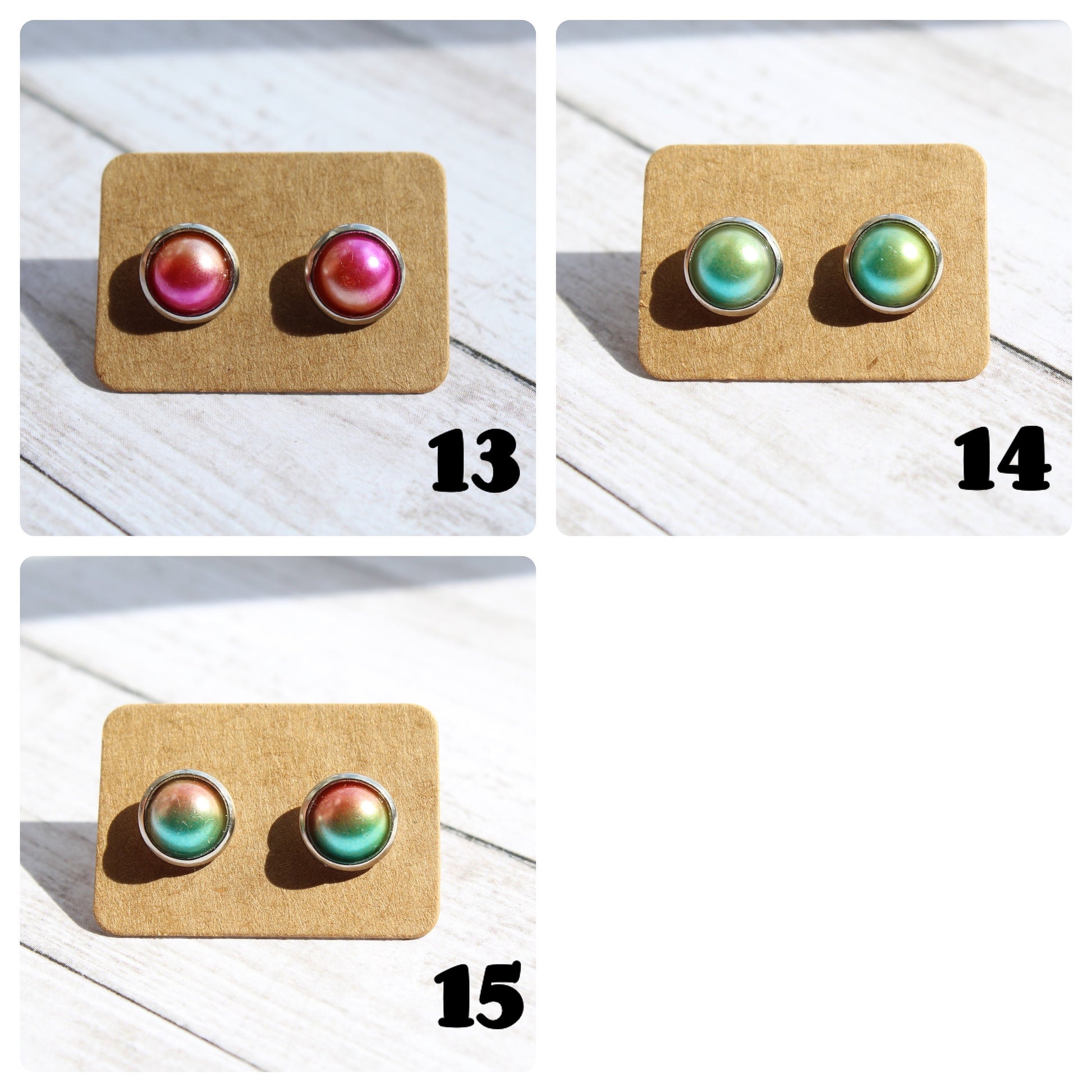 There is a variety of 15 colors to choose from! You will also receive a metal and rubber backing for each pair. Please reference to the photos above to know which color you are selecting. (The colors may vary slightly from the photo).