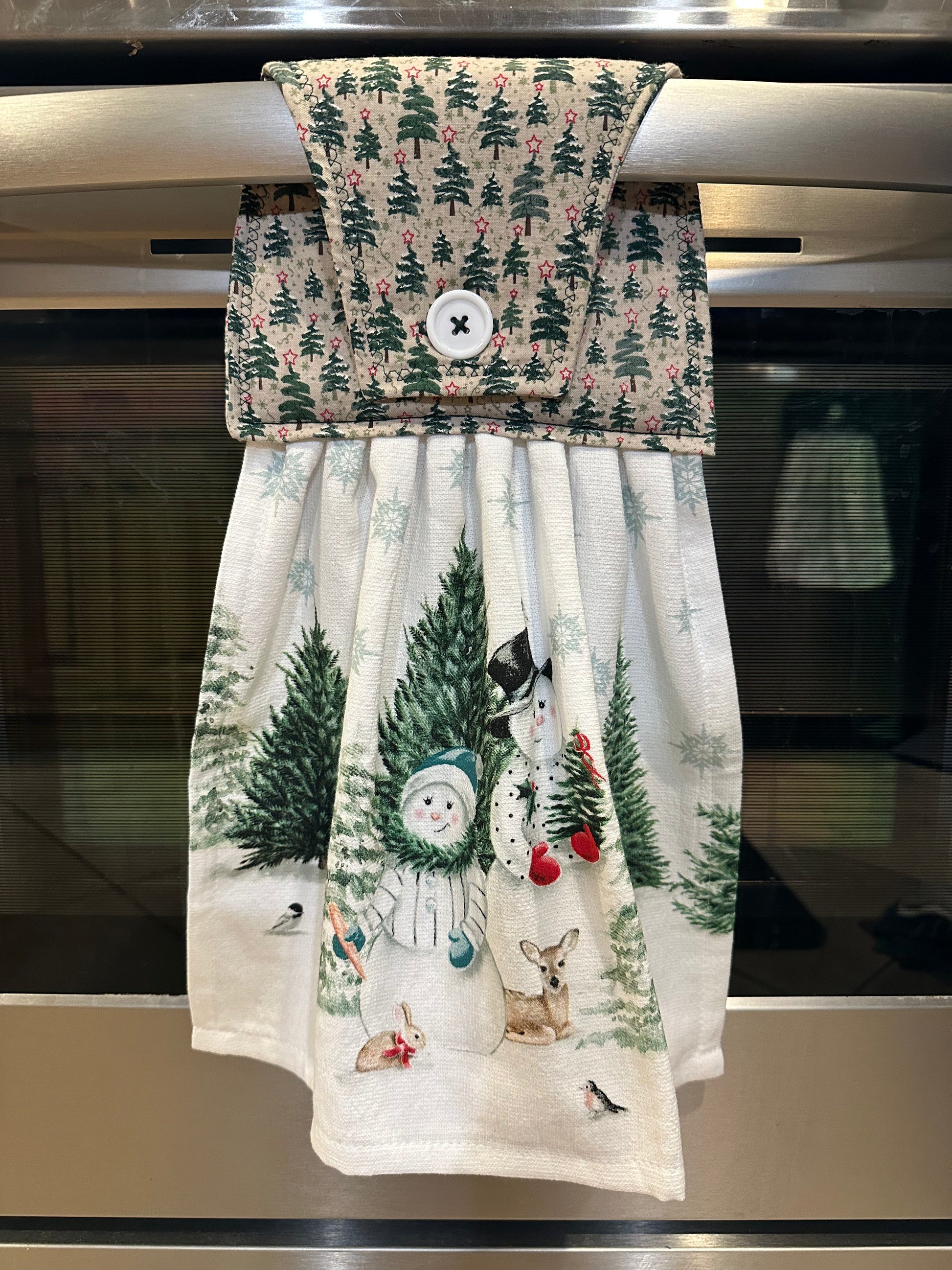 This item is ready to ship to your new home! The perfect housewarming gift! The towel has a hand sewn button for you to easily hang from your stove handle.