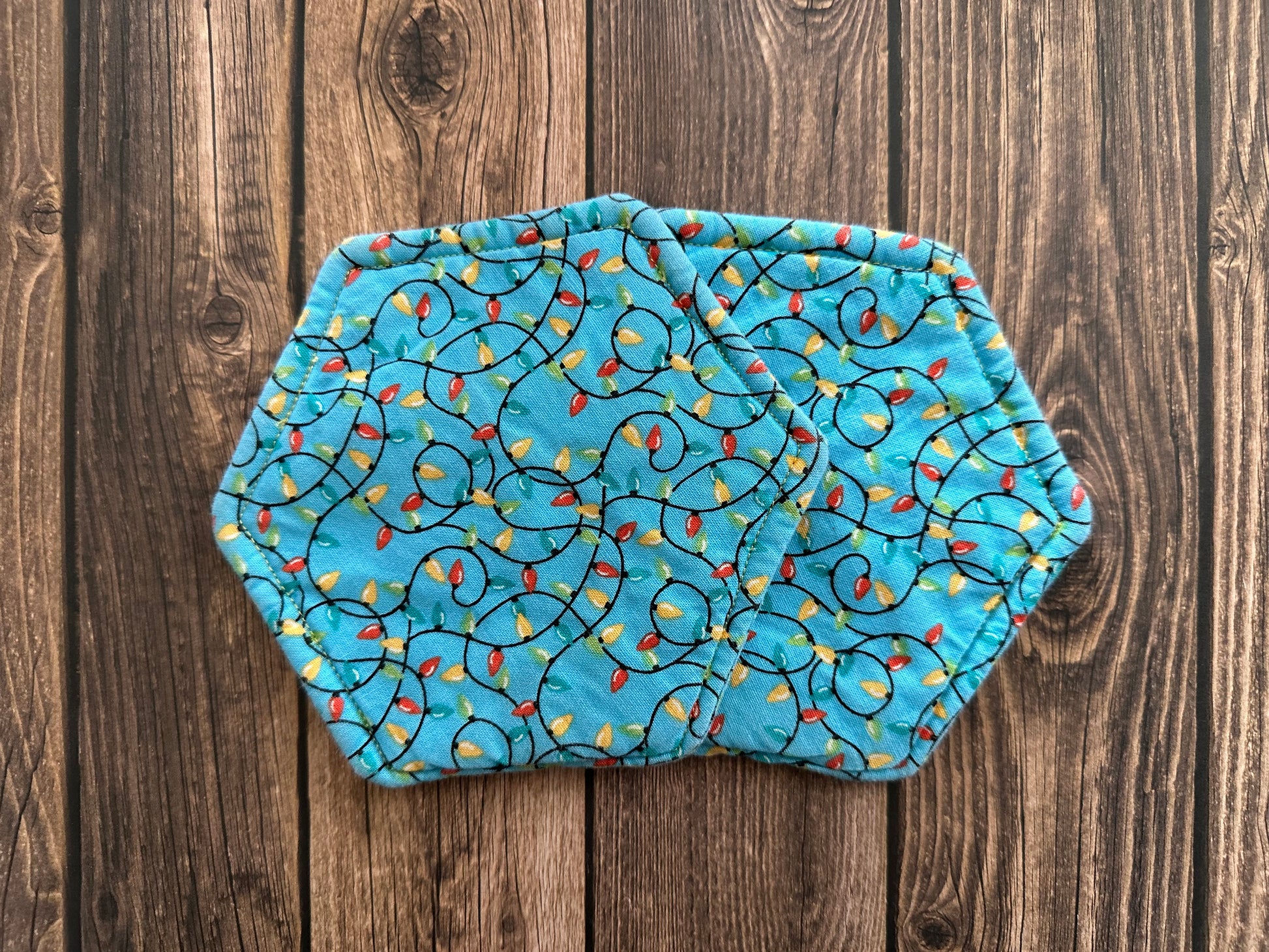 This listing includes a set of four fabric coasters. The coasters are made from 100% cotton fabric with 2 layers of natural cotton batting. This dual layer will help protect the surfaces of tables from getting ring marks or any heat damage.