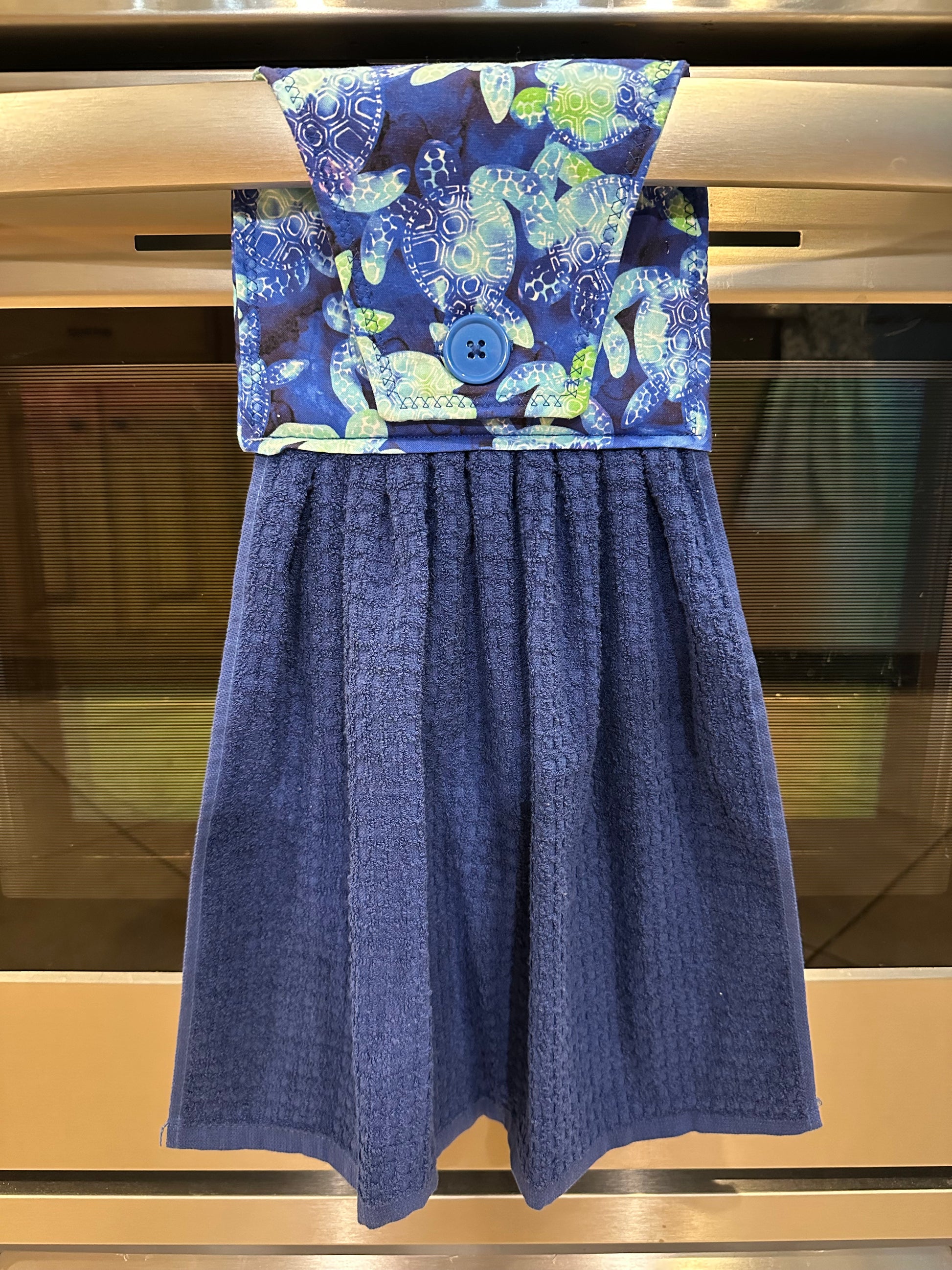 This item is ready to ship to your new home! The perfect housewarming gift! The towel has a hand sewn button for you to easily hang from your stove handle.