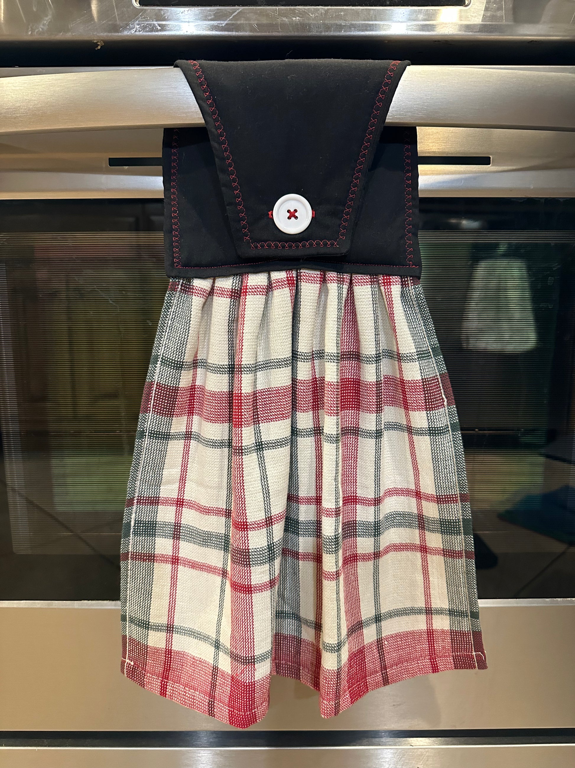 This item is ready to ship to your new home! The perfect housewarming gift! The towel has a hand sewn button for you to easily hang from your stove handle.