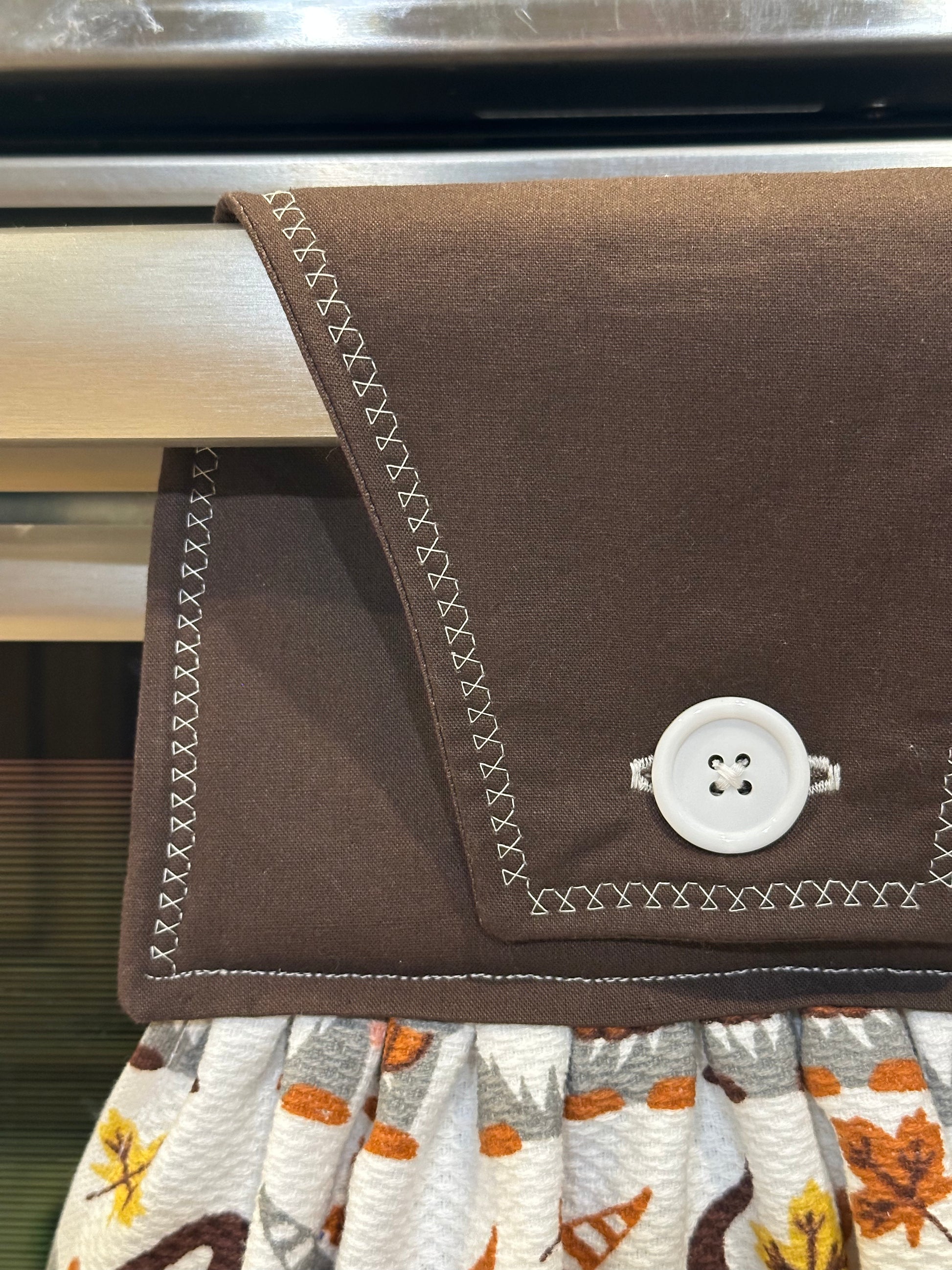 This item is ready to ship to your new home! The perfect housewarming gift! The towel has a hand sewn button for you to easily hang from your stove handle.