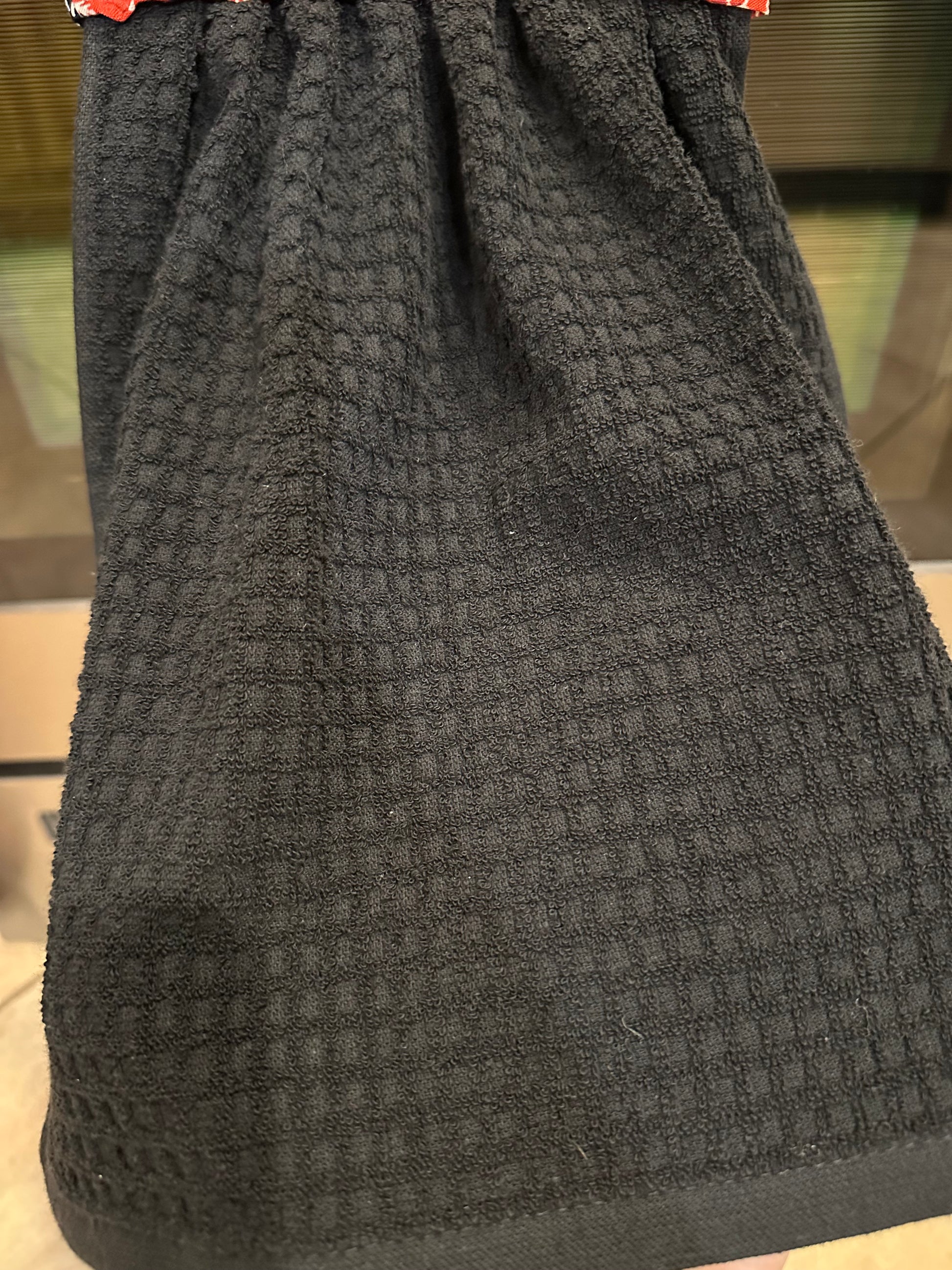 This item is ready to ship to your new home! The perfect housewarming gift! The towel has a hand sewn button for you to easily hang from your stove handle.