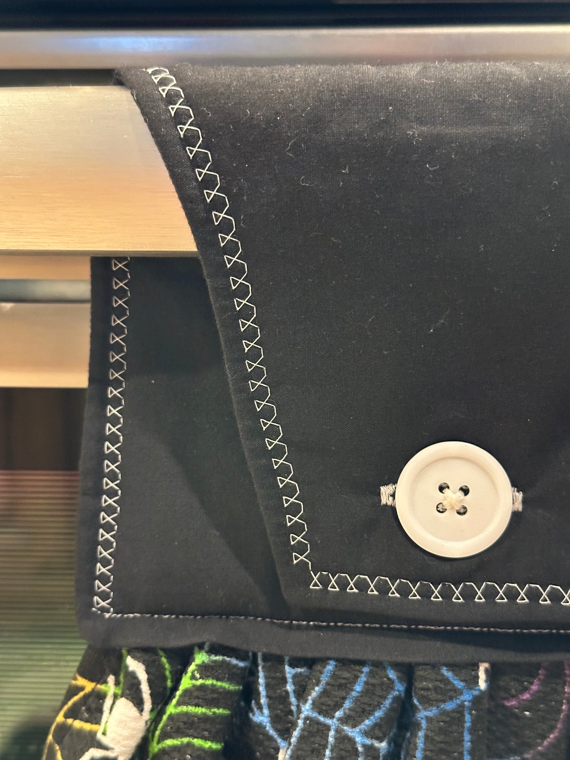 This item is ready to ship to your new home! The perfect housewarming gift! The towel has a hand sewn button for you to easily hang from your stove handle.