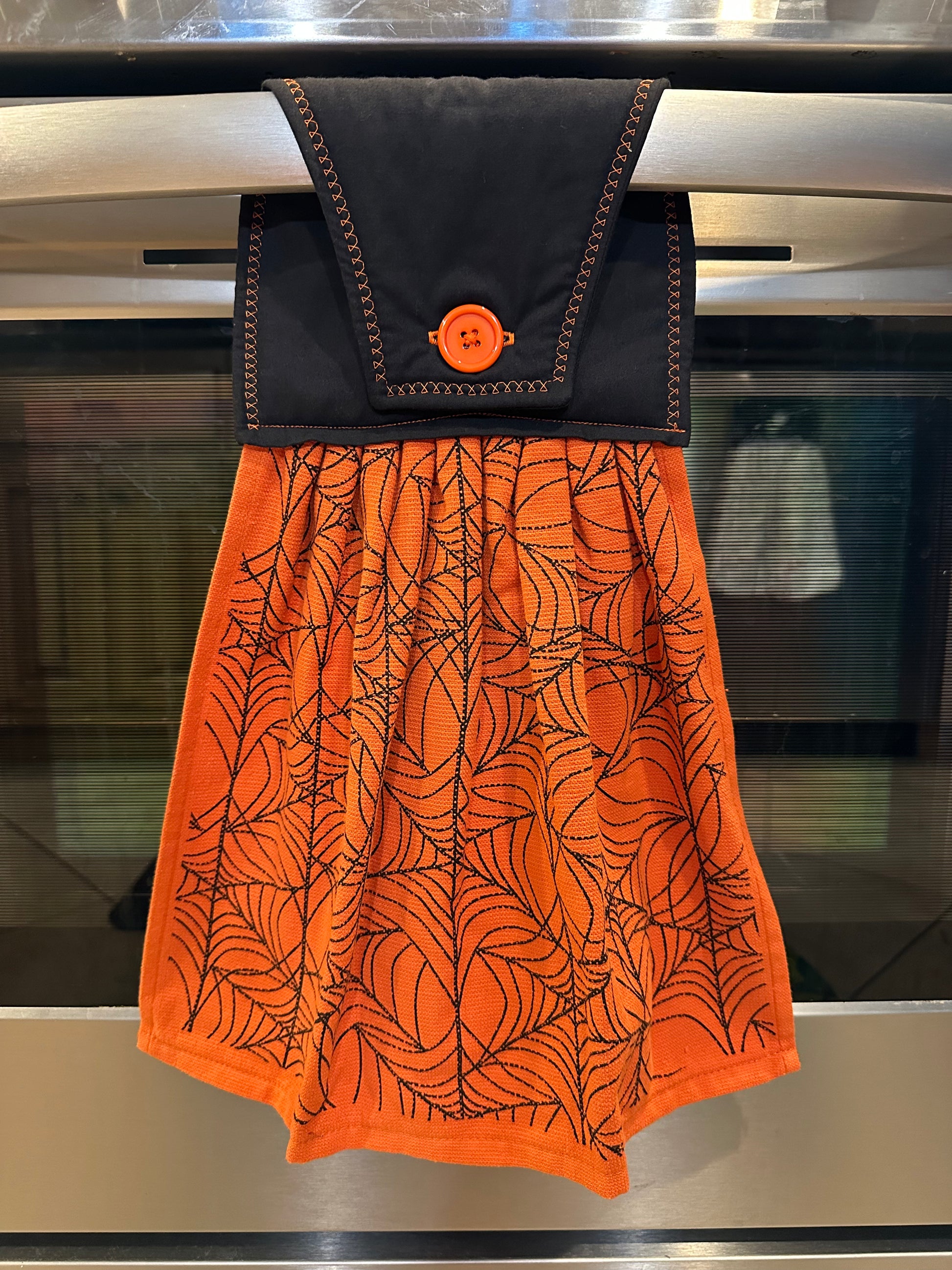 This item is ready to ship to your new home! The perfect housewarming gift! The towel has a hand sewn button for you to easily hang from your stove handle.
