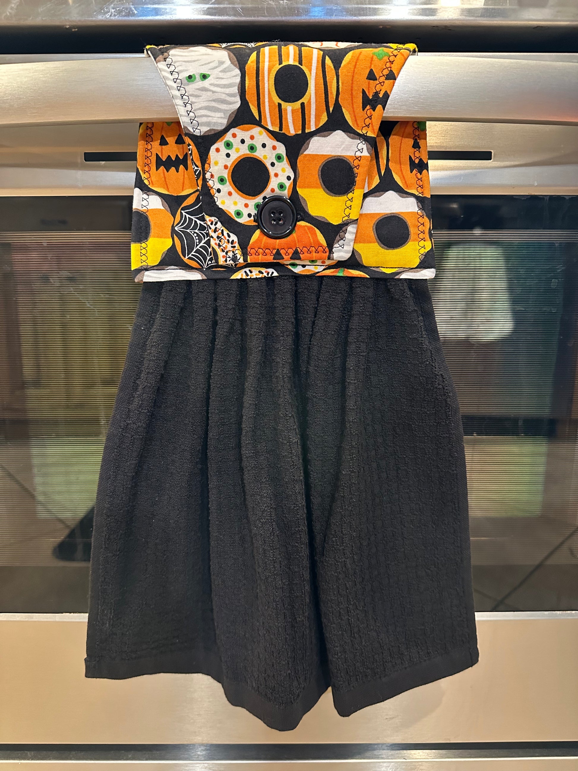This item is ready to ship to your new home! The perfect housewarming gift! The towel has a hand sewn button for you to easily hang from your stove handle.